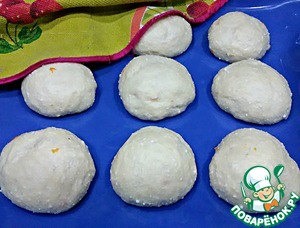 Тесто разделить на 9 равных частей, каждую из которых скатать в шар.