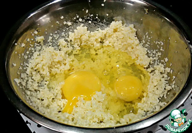 Добавить яйца и соль.