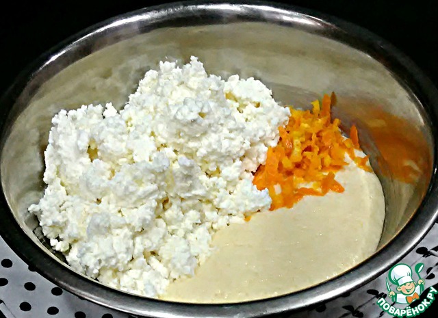 Добавить цедру апельсина, творог и тщательно взбить.
