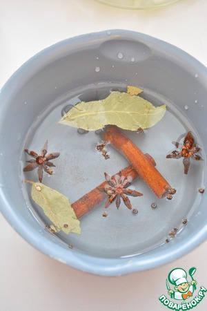 Для маринада вскипятите воду со специями, солью, сахаром и уксусом