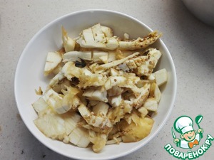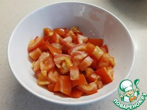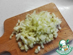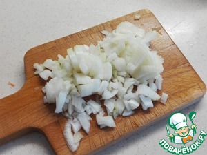 Извлеченную из баклажан мякоть режем на мелкие кусочки.