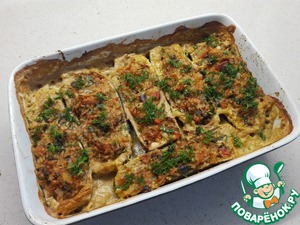 Разогреваем духовой шкаф до 200 градусов и помещаем в него форму для запекания на 15-20 минут до образования корочки.