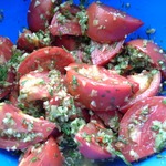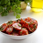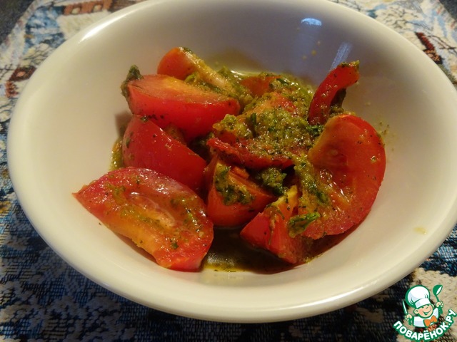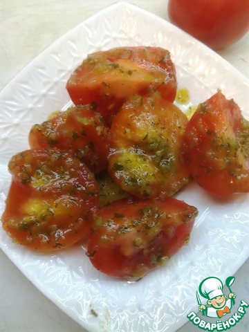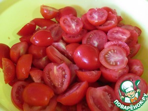 Помидоры помыть и, если небольшие, то разрезать пополам. Если помидоры крупные, то на 4 и больше частей.