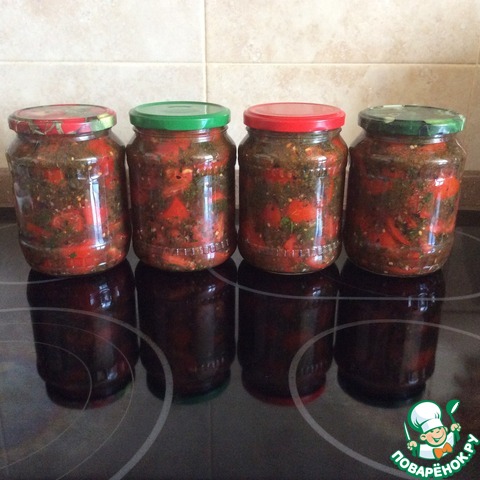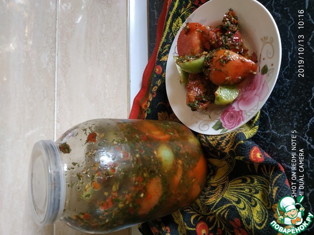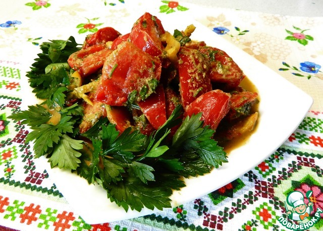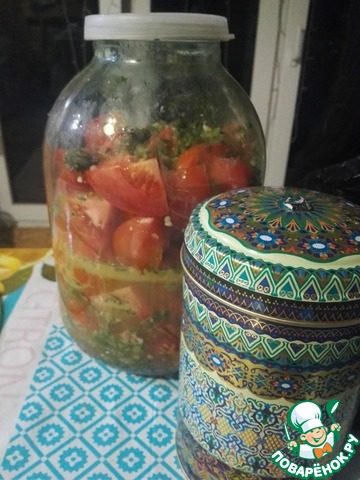 Очень вкусные острые помидоры. С головокружительным ароматом. Главное их не съесть, пока готовишь, и дождаться полного созревания вкуса! Идея для рецепта взята у Марины Marinuly.