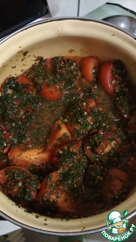 Из зелени только базилик, сахар соль уксус уменьшила немного, на мой вкус получилось то что надо!!!