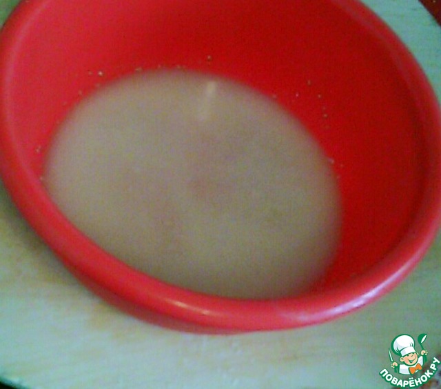 В стакан теплой воды добавим 1 ст. л. дрожжей, перемешаем и оставим на пару минут
