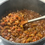 Тушить чатни под крышкой на тихом огне 1 час. Затем крышку снять, огонь увеличить и готовить, постоянно помешивая, до тех пор, пока не выпарится вся жидкость. Если нужно, подкорректировать на соль-перец-уксус.