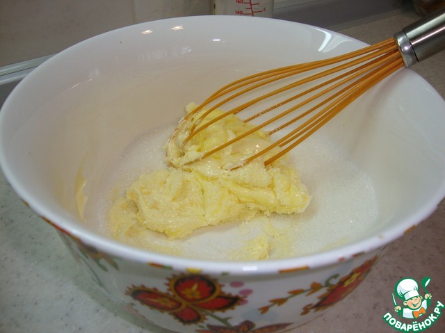 Для начала нужно достать из холодильника сливочное масло, чтобы оно хорошо размягчилось. Когда масло станет мягким, добавить к нему весь сахар. С помощью венчика тщательно растереть масло с сахаром.