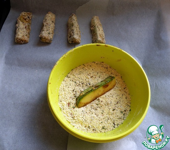Рецепт «Пикантные кабачковые дольки в хрустящей панировке»: