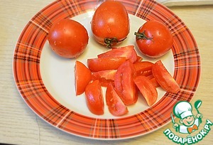 Помидоры нужно брать некрупные, крепкие. Их также нарежьте сегментами