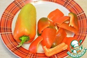 Перец освободите от плодоножки и перегородок, нарежьте крупно