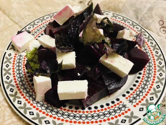 Предлагаю приготовить простой, легкий и полезный салат из печеной свеклы и сыра Фета. В этот салат добавила листья свежего базилика, получилось удачное сочетание. Можно так же экспериментировать с заправкой для салата, добавить горчицы. Используем в качестве гарнира к мясу, птице, рыбе или как самостоятельное блюдо.