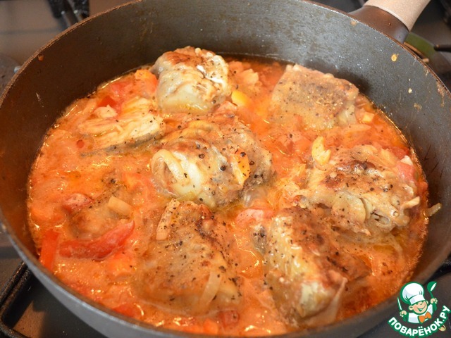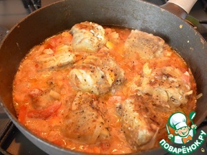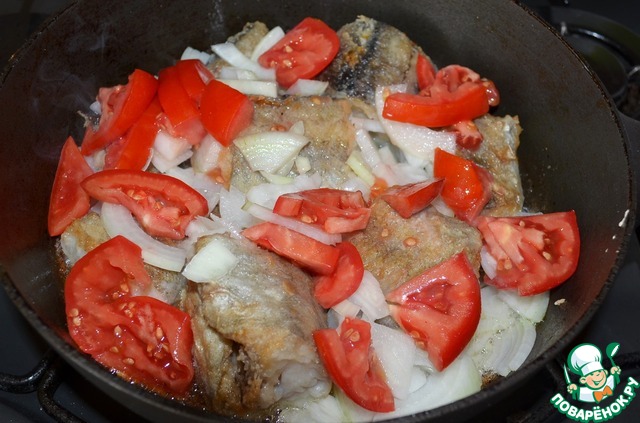 Вкусно, просто, быстро! Помидор кусочками я не добавляла, так как было домашнее томатное пюре, а еще добавила морковь. Минтай получается с такой подливой очень нежный и сочный! Людочка, он вкусен и горячим, и холодным, и в первый день, и во второй! Спасибо за угощение!