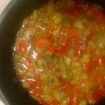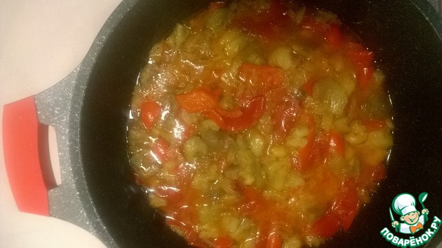 Вегетарианское овощное блюдо. У нас в городе стоит безумная жара и особо ничего есть не хочется в такую погоду, да и выготавливать что то сил нет, даже под кондиционером. Чем мне понравилось это блюдо, это тем, что оно легкое в приготовление, 10 минут на подготовку, и 1час готовки, но уже без Вас. Вкусно есть как в горячем, так и в холодном виде. А если сильно захотеть и не менять оригинальный рецепт, то можно и на зиму закрыть. Очень универсальное блюдо. А главное, что вкусное и легкое!