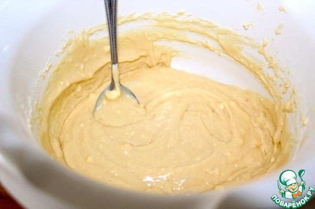 Тесто должно получиться жидким, чуть гуще, чем на оладьи. -