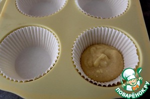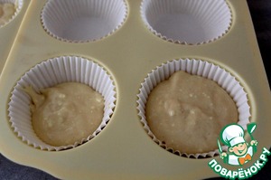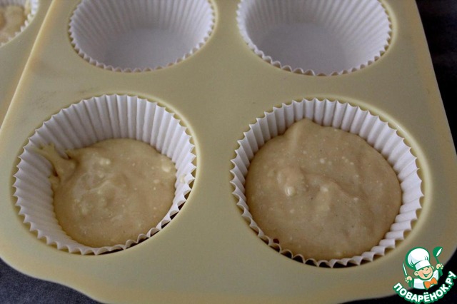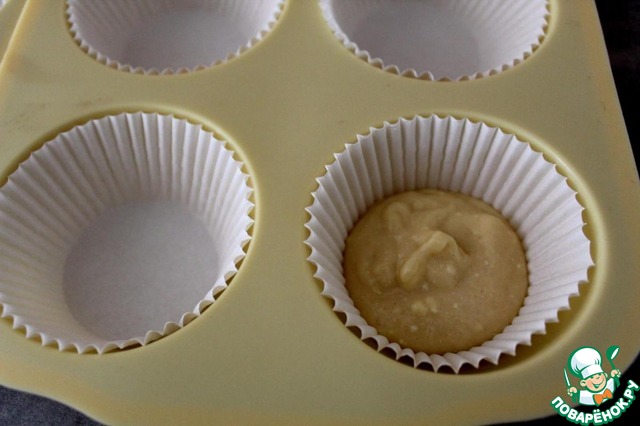 Смазать формы для кексов растительным маслом. Я этого не делала, а просто взяла бумажные формы для кексов. Налить примерно столовую ложку теста в формы