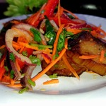 Готовую закуску стараться брать вилкой сверху -вниз, чтобы не смешивать слои, прихватывая при этом все овощи.
