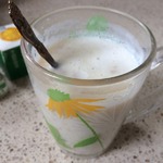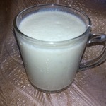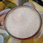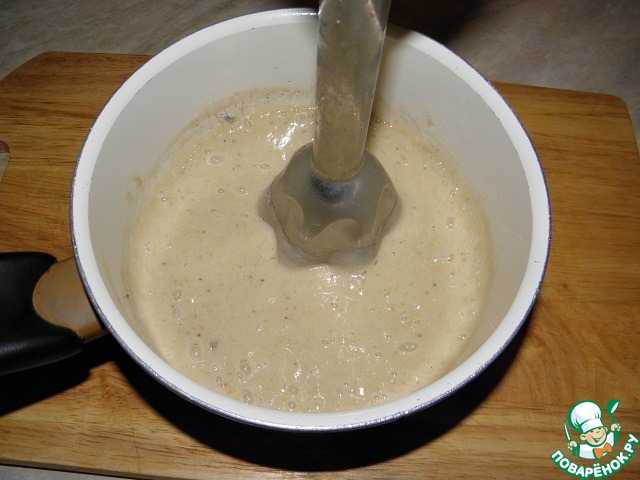 Банановую массу залить одним стаканом очень хорошо подогретого молока и перемешать