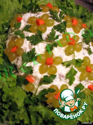 Украшаем виноградиком, кубиками морковочки и листиками петрушки..