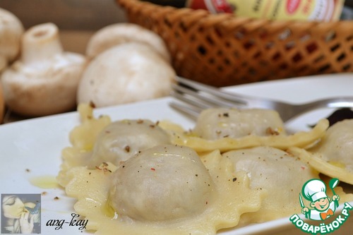В преддверии Успенского поста предлагаю постное, вегетарианское блюдо. Это равиоли с оригинальной начинкой. Очень вкусные, с орехово-луковым вкусом и ноткой грибов. Если не очень хочется делать равиоли, то вполне можно налепить с такой начинкой вареники.