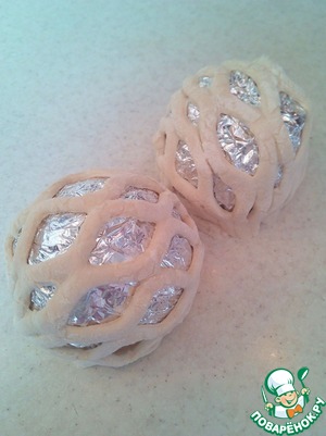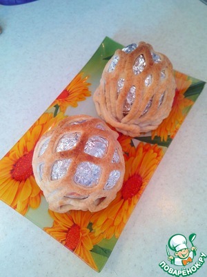Тесто раскатать не слишком тонко (одной пластины хватит как раз на 4 полусферы). Раскатанное тесто нарезать сеточкой и немного растянуть. Окутать яблоко так, чтобы снизу остался проем, излишки теста можно подрезать.