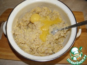 Отделяем желтки от белков, и как сырно-сухарная масса немного остынет, добавляем к ней желтки и опять перемешиваем (солить по вкусу не забываем, самое главное с солью осторожно!