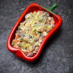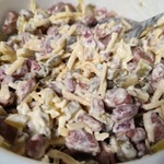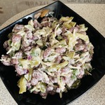 [+4]Получился немного солёным и не хватает остроты на мой вкус. Возможно, нужно другую заправку, скажем сметана+горчица, тогда будет менее солёным и от горчицы острота.