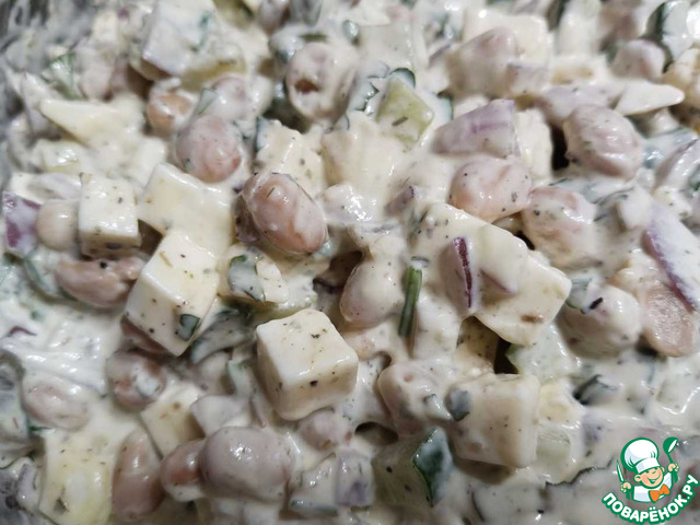 Салат с фасолью, огурцом и сыром