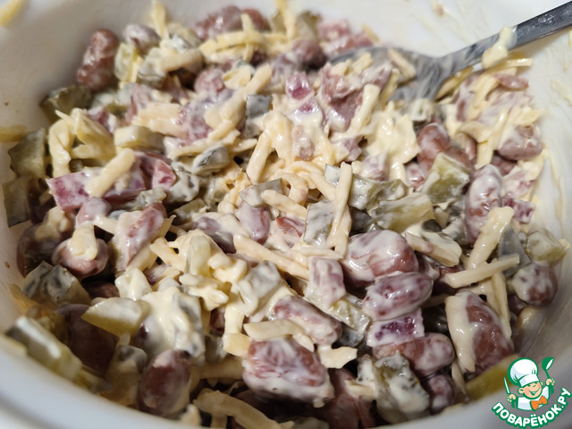 Рецепт «Салат с фасолью, огурцом и сыром»:
