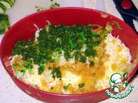 На самой мелкой терочке трем сыр, яйца, яблочко(можно вместе со шкуркой, но, конечно, без сердцевинки), чесночок измельчаем вымытый и просушенный бумажными салфетками укропчик. |