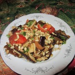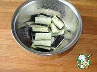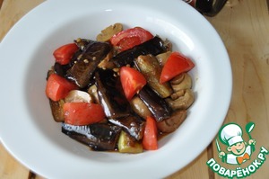 К остывшим баклажанам добавляем нарезанные помидоры, в оригинале были черри.
