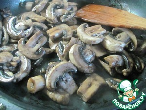 Грибы положить в сковороду, налить соевый соус, перемешать.