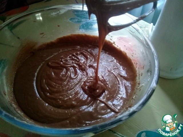 Шоколадный бисквит. Взбить миксером сметану, сахар, какао и гашенную соду. Добавить масло, взбить.