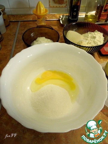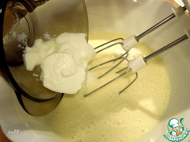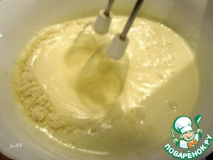 Вручную или на самых малых оборотах миксера вмешать сухие ингредиенты...