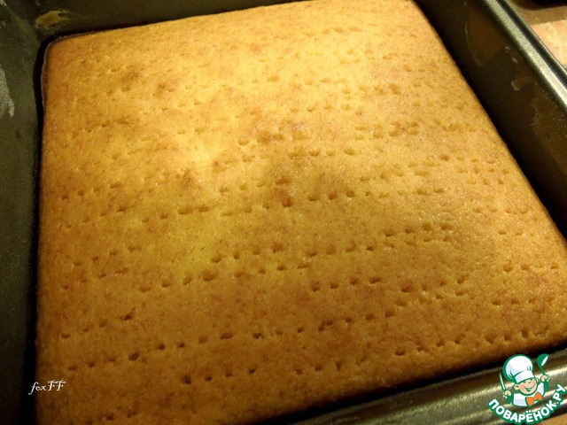 Вынуть пирог из духовки и остудить прямо в форме около 1 часа, а затем часто наколоть вилкой (хотя он и так хорошо пропитывается). Моя семья не дала так много времени, пирог остывал около 30 минут.