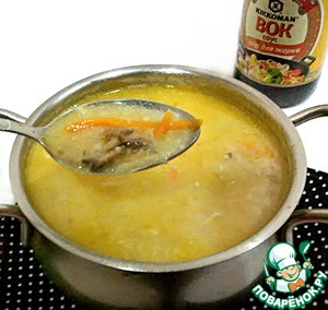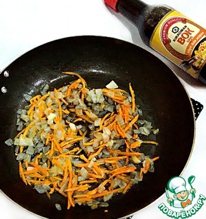 Добавить соевый соус ТМ Kikkoman, обжарить минуты две и сразу кладем зажарку в суп. -