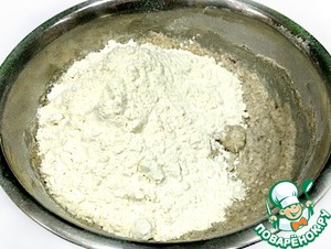 Пшеничную муку сначала добавить 2/3 порции, перемешать и ввести понемногу остальную часть муки. Ее может понадобиться больше или меньше, в зависимости от клейкости Вашей муки. У меня ушло 180г.