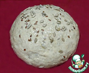 Перед посадкой в духовку тесто обмазать растопленным сливочным маслом (20 сек. в микроволновке) и посыпать по желанию зерновой смесью или любой посыпкой для хлеба.