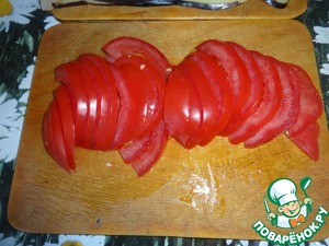 Складываем сначала кабачок, затем синий, помидор и скручиваем рулетиком-получается РОЗОЧКА... И так делаем много розочек..