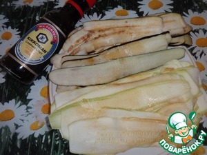 Пластины из кабачков и баклажан поливаем соевым соусом.