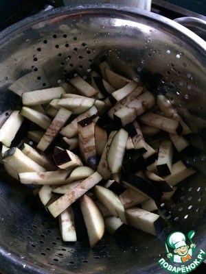 • Баклажаны вымыть, нарезать толстой соломкой.