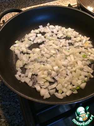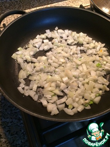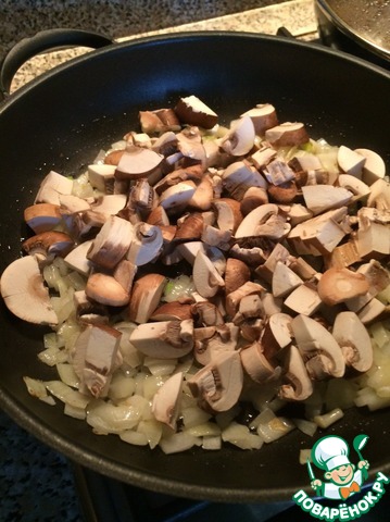 Порезанные грибы добавить к луку, обжарить вместе минут 5.