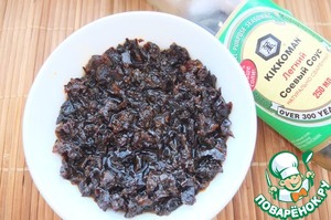• Чернослив измельчаем в блендере или ножом. В измельченный чернослив добавляем соевый соус Киккоман "Легкий". Лучше это сделать заранее, за пару часов до начала готовки.