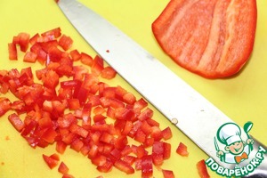 Для омлета болгарский перец порезать мелкими кубиками.