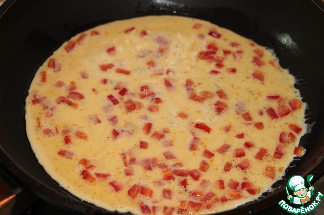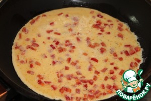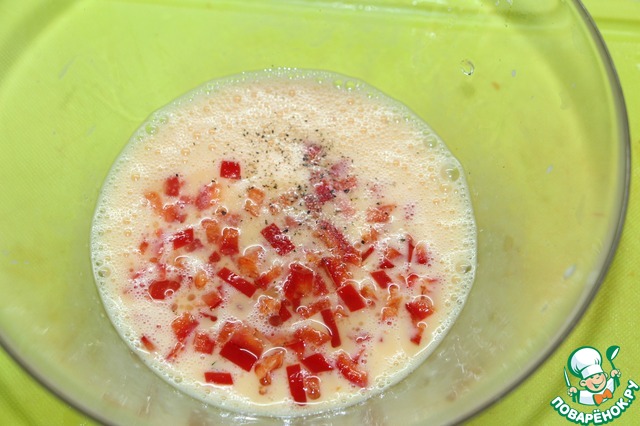 К яичной смеси добавить кубики перца.