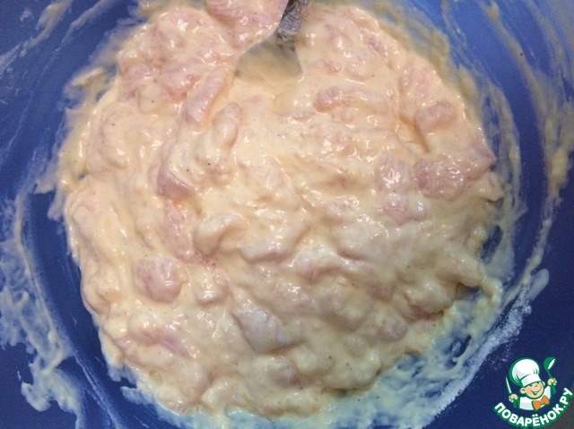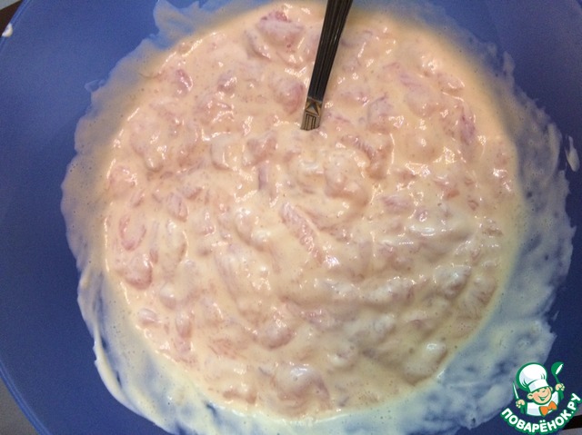 Далее добавляем майонез или сметану, можно пополам то и то, соль, перец по вкусу, перемешиваем