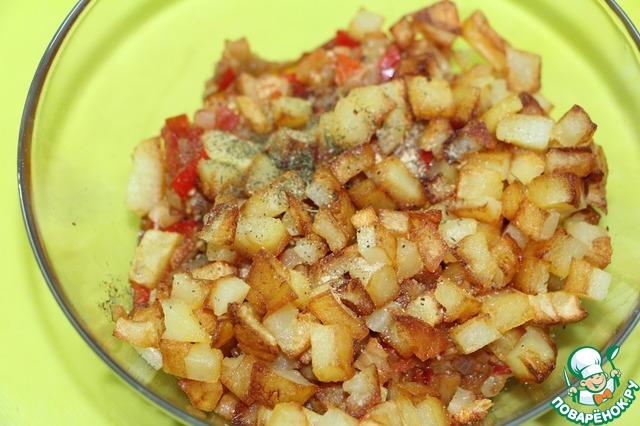 Картофель порезать кубиками. Обжарить отдельно от других овощей на оставшемся масле.