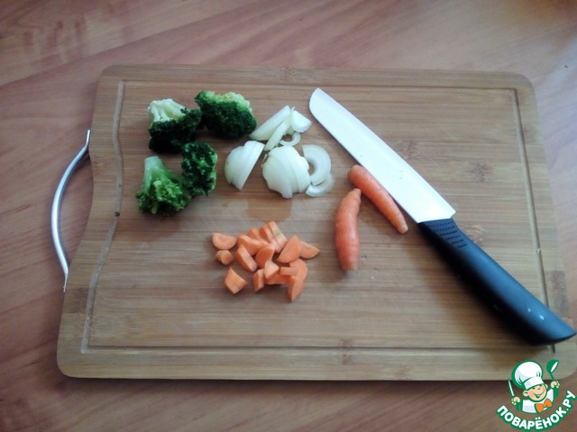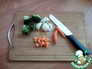 Режем морковь, лук, брокколи оставила соцветиями.
