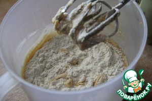 • Смешать сухие ингредиенты и ввести в 3 приема в масляную массу, перемешать.