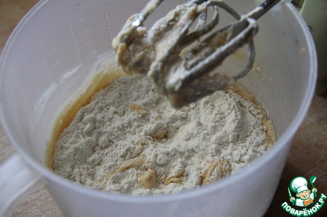 • Смешать сухие компоненты и вводить в массу, чередуя с молоком (начиная и заканчивая сухими)